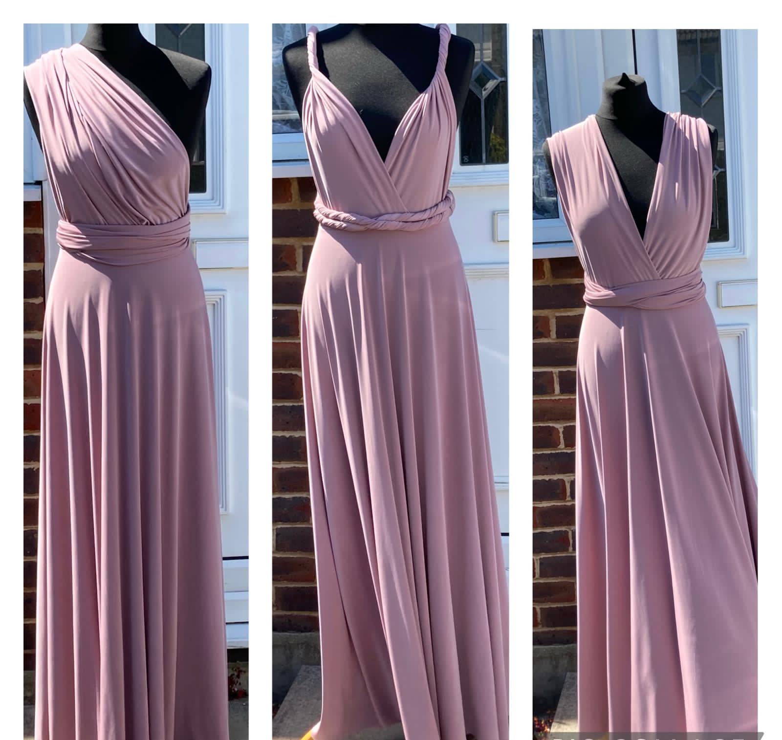 I quickly went back and came with our beautiful V-neck full-length dress with sparkly crystal waist detail. It flows gorgeously round the body. As one of her girls came out wearing the dress, her eyes welled up, and she gave me a tight squeeze on the shoulders. There was no doubt that the ladies had fallen in love with the dress.